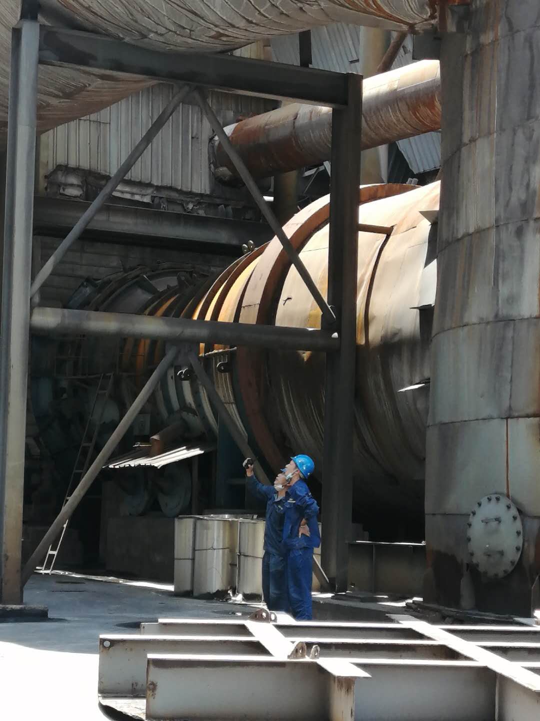 生產部長和檢修班長現場指揮