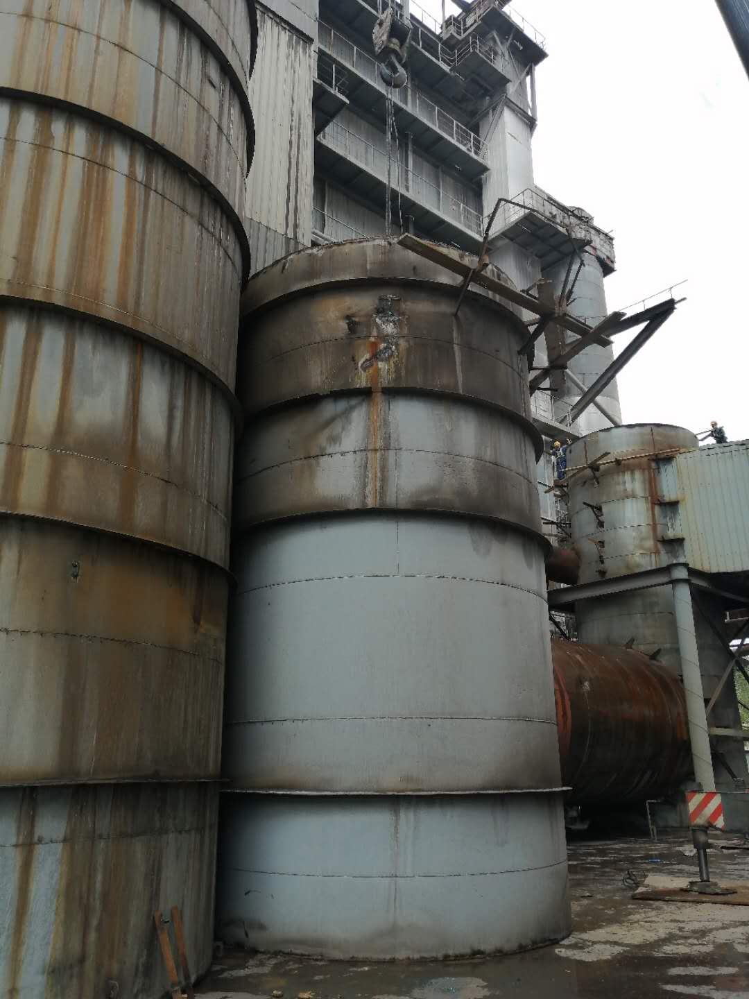 62日天氣晴朗,風力1級,具備良好的施工條件,7:30130噸的吊車準時到達拆除現場,檢修班長針對性的給班員講解具體的拆除工序,具體的安全措施、落實到個人、落實到互保對子。8:30分煙囪頂部的大蓋安全拆除,13:1530噸重的第一節(jié)煙囪安全拆除,16:0015噸重的第二節(jié)煙囪安全拆除。